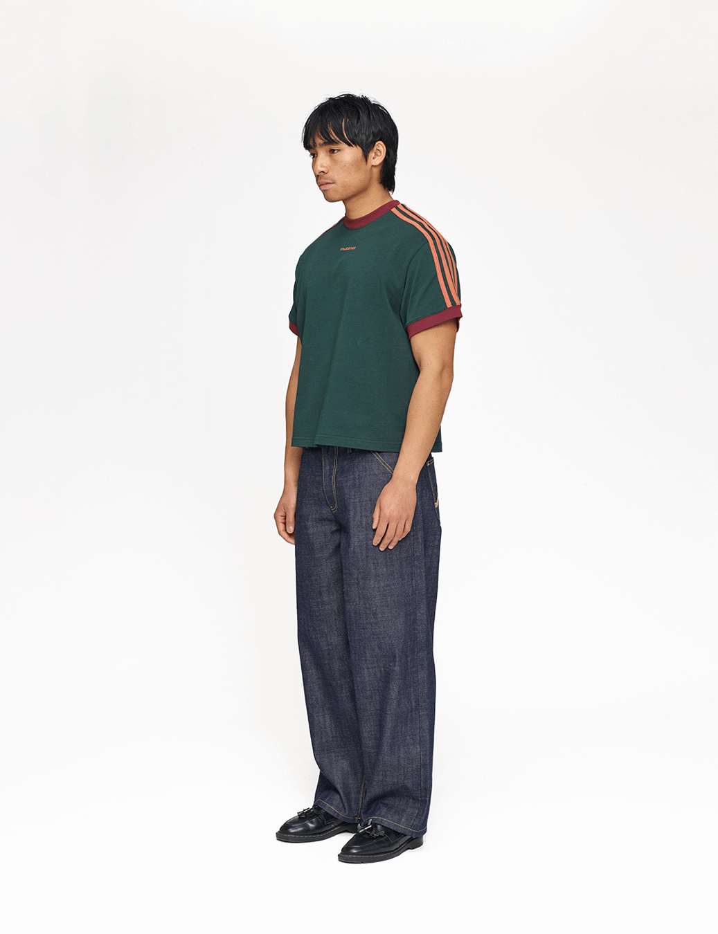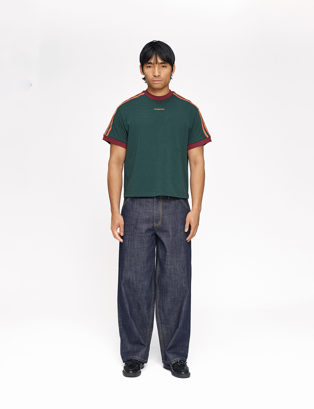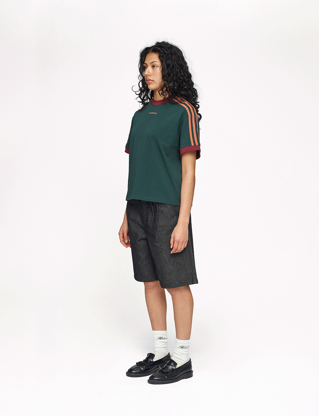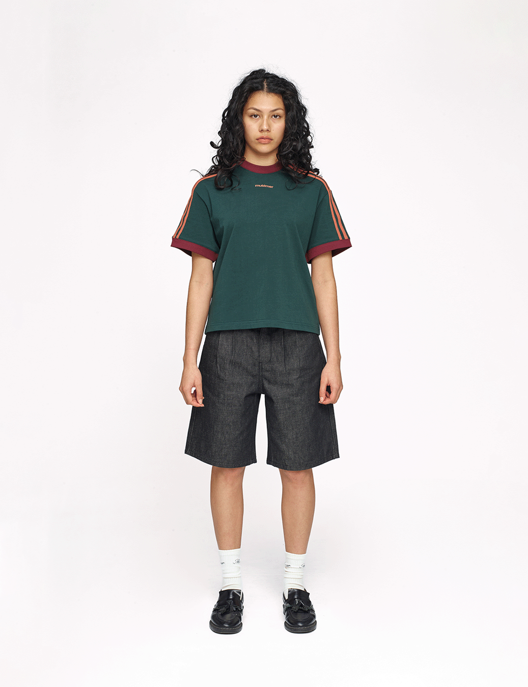 Designed using our Everyday t-shirt fit, the Forest Green Lundun Ringer is crafted from soft midweight cotton and features four-stripe detailing on sleeves, Mutimer printed graphic with contrast ribbing at the neckline, sleeves and hem.