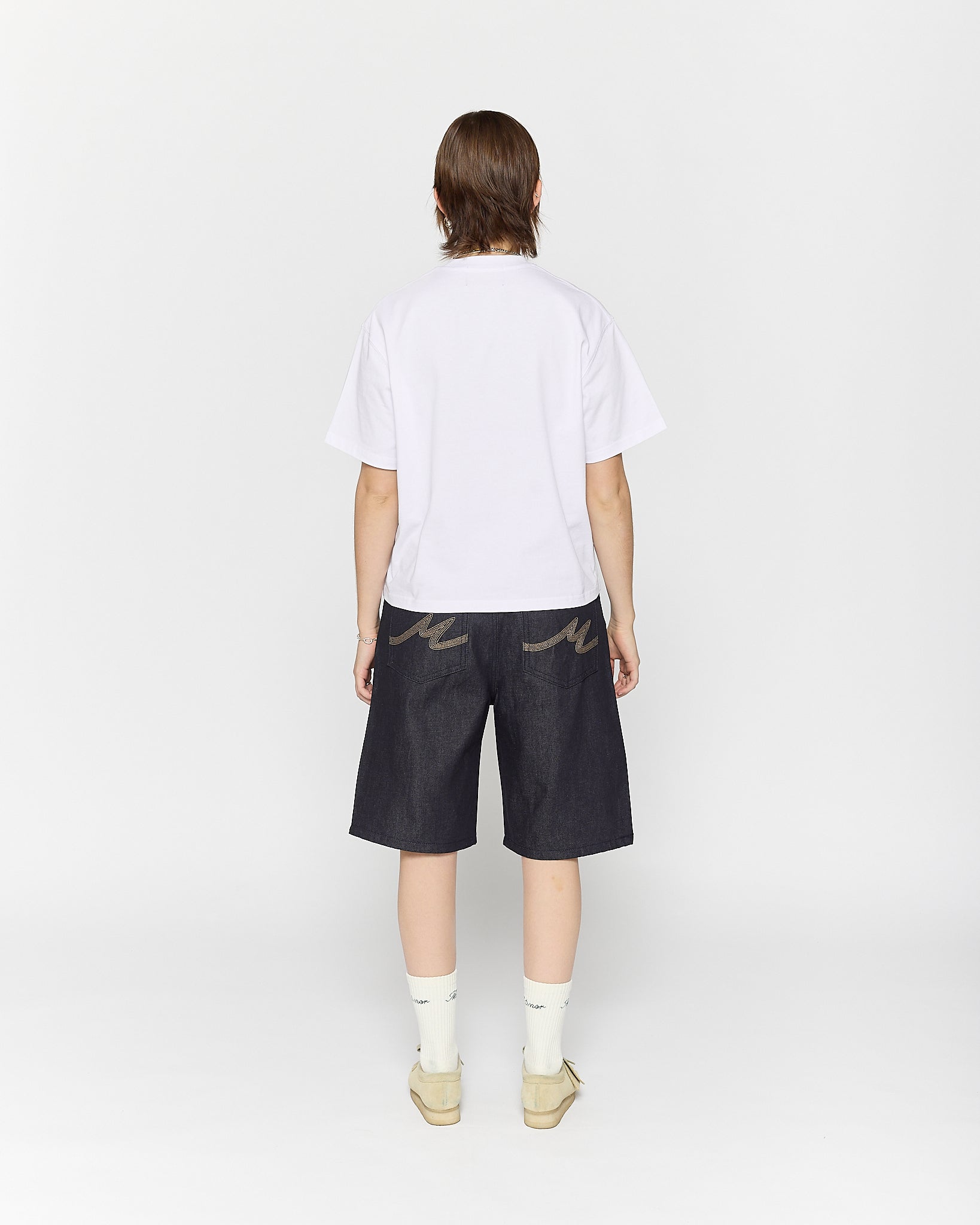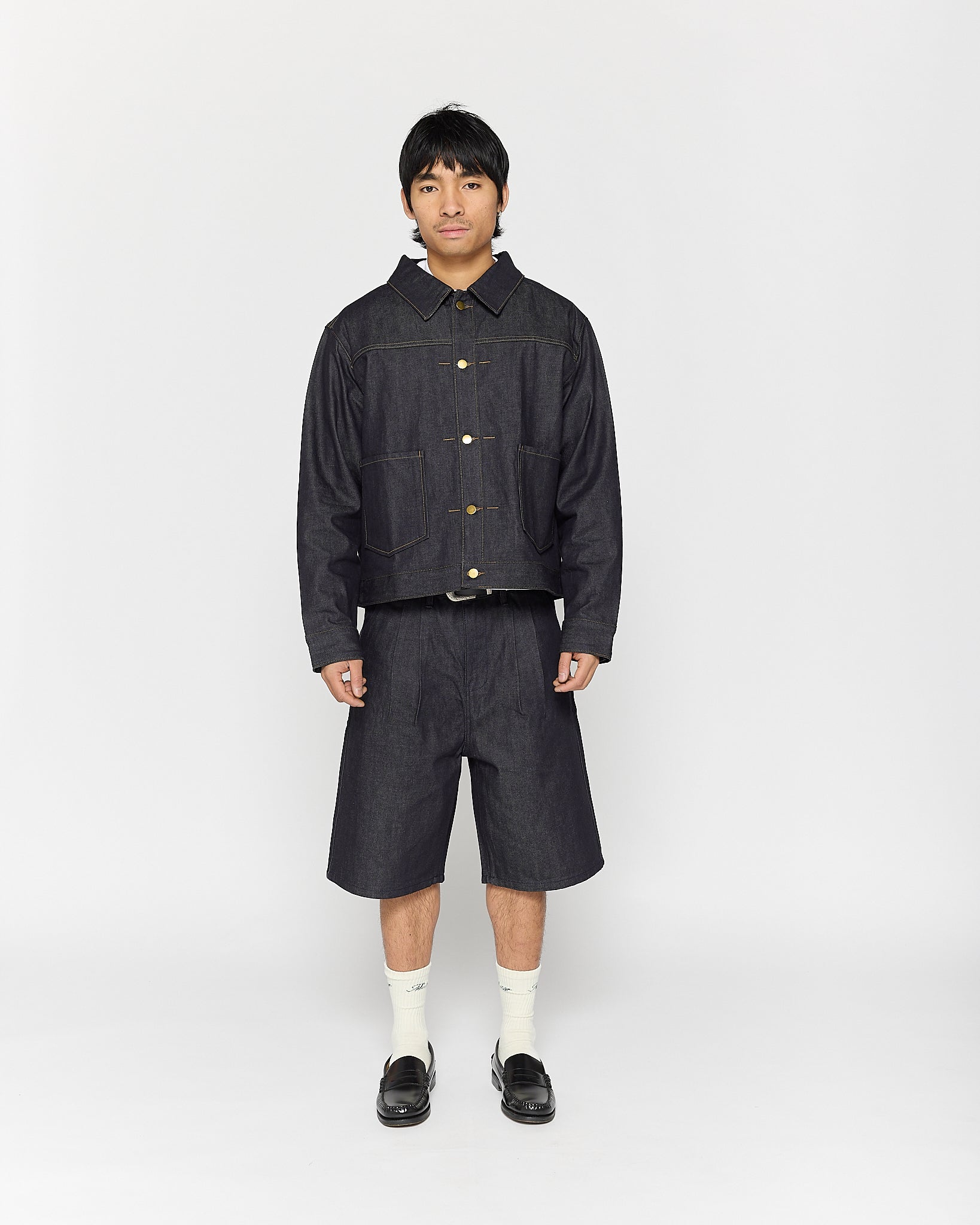Designed for a wide-leg baggy fit, the Raw Pleated Shorts are crafted from our custom-milled 13.5 Oz raw 'carbon' denim and feature double front pleats with ghost stitching and a YKK zip fly closure.