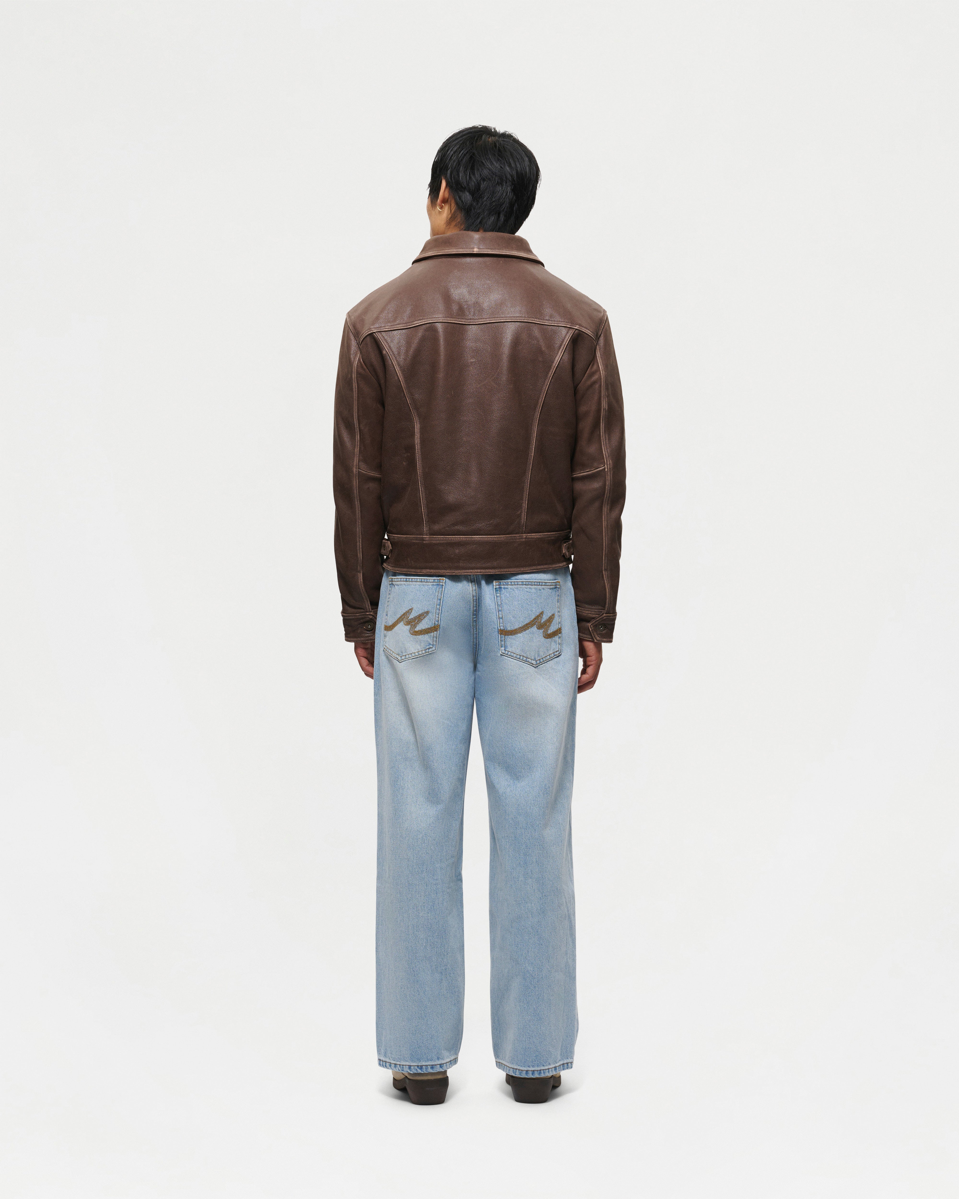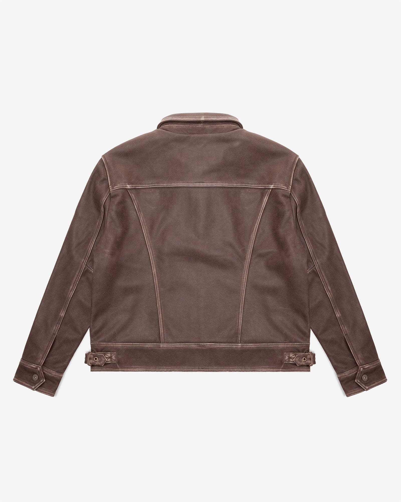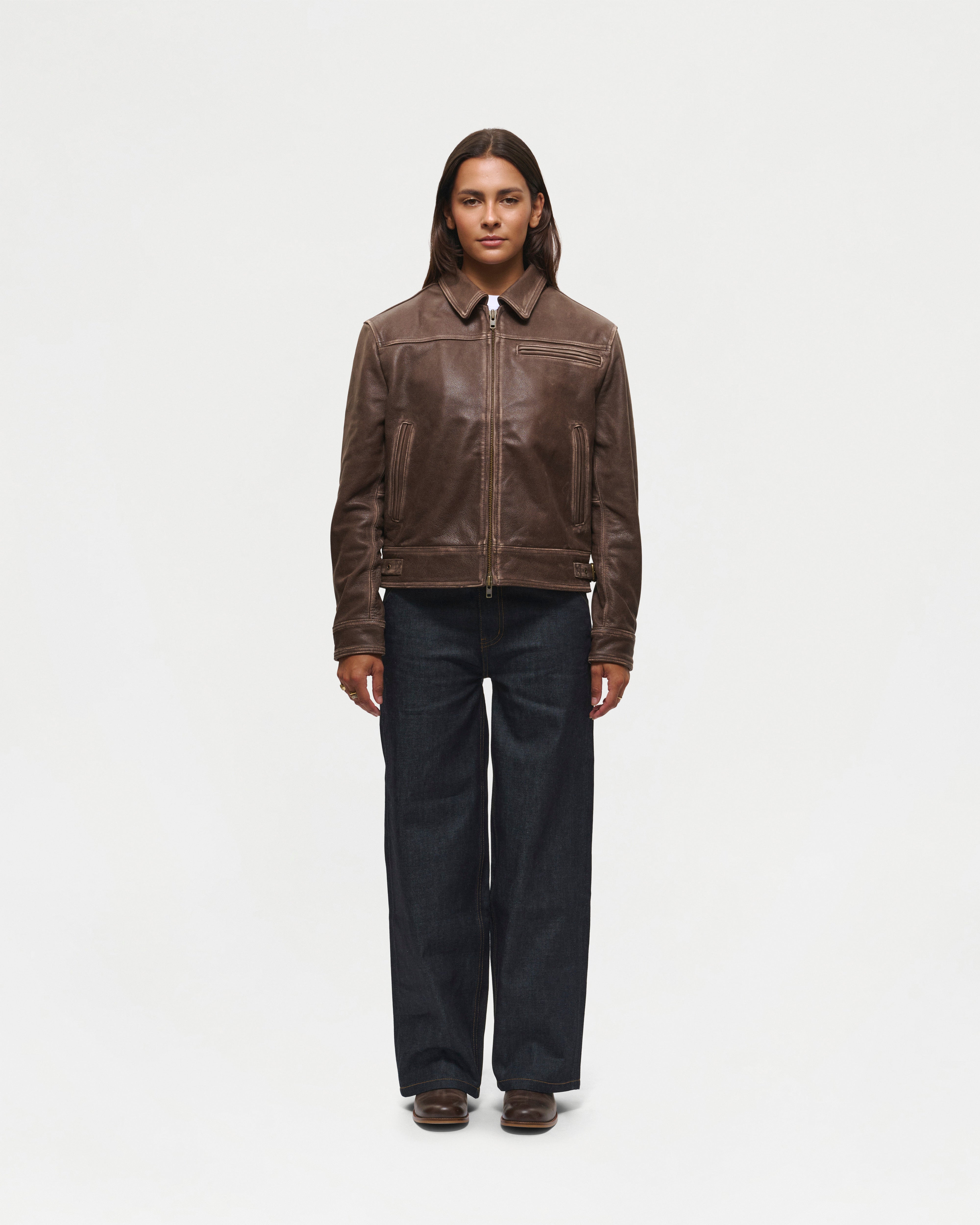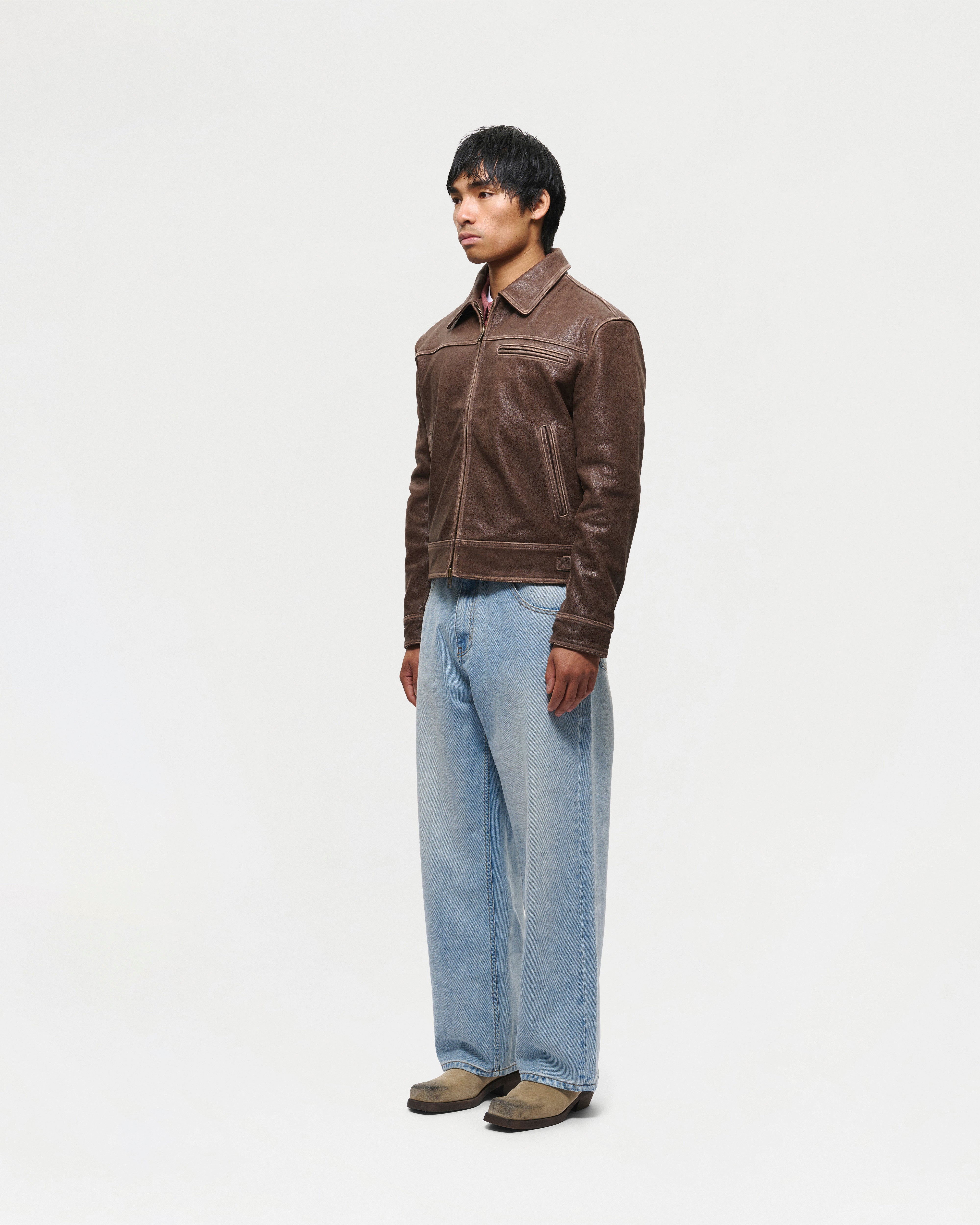 Inspired by vintage leather jackets, the Aged Heavy Wash Leather Jacket is designed for a slightly wide and boxy fit and crafted from premium full-grain cow leather with an enzyme wash for an aged look.