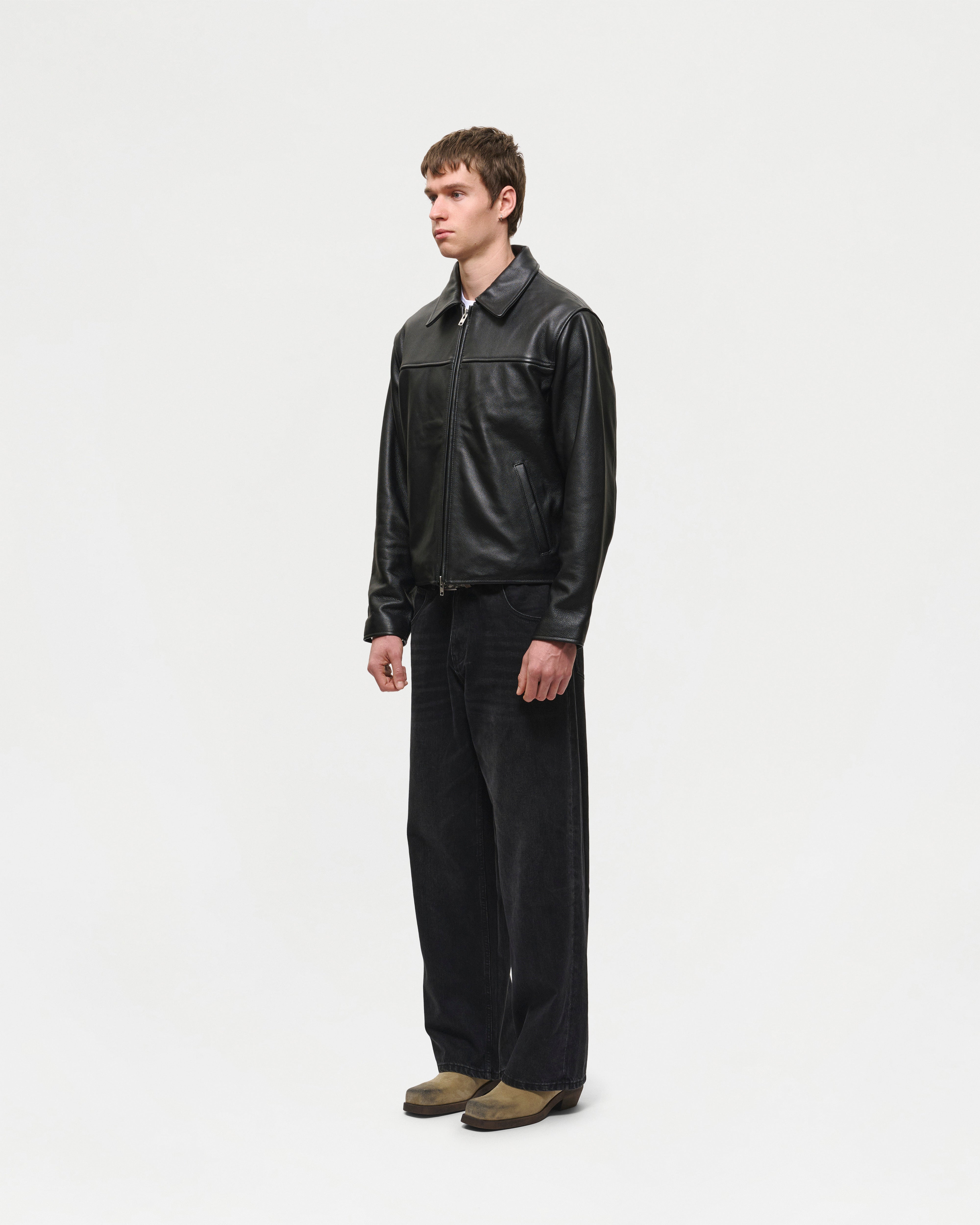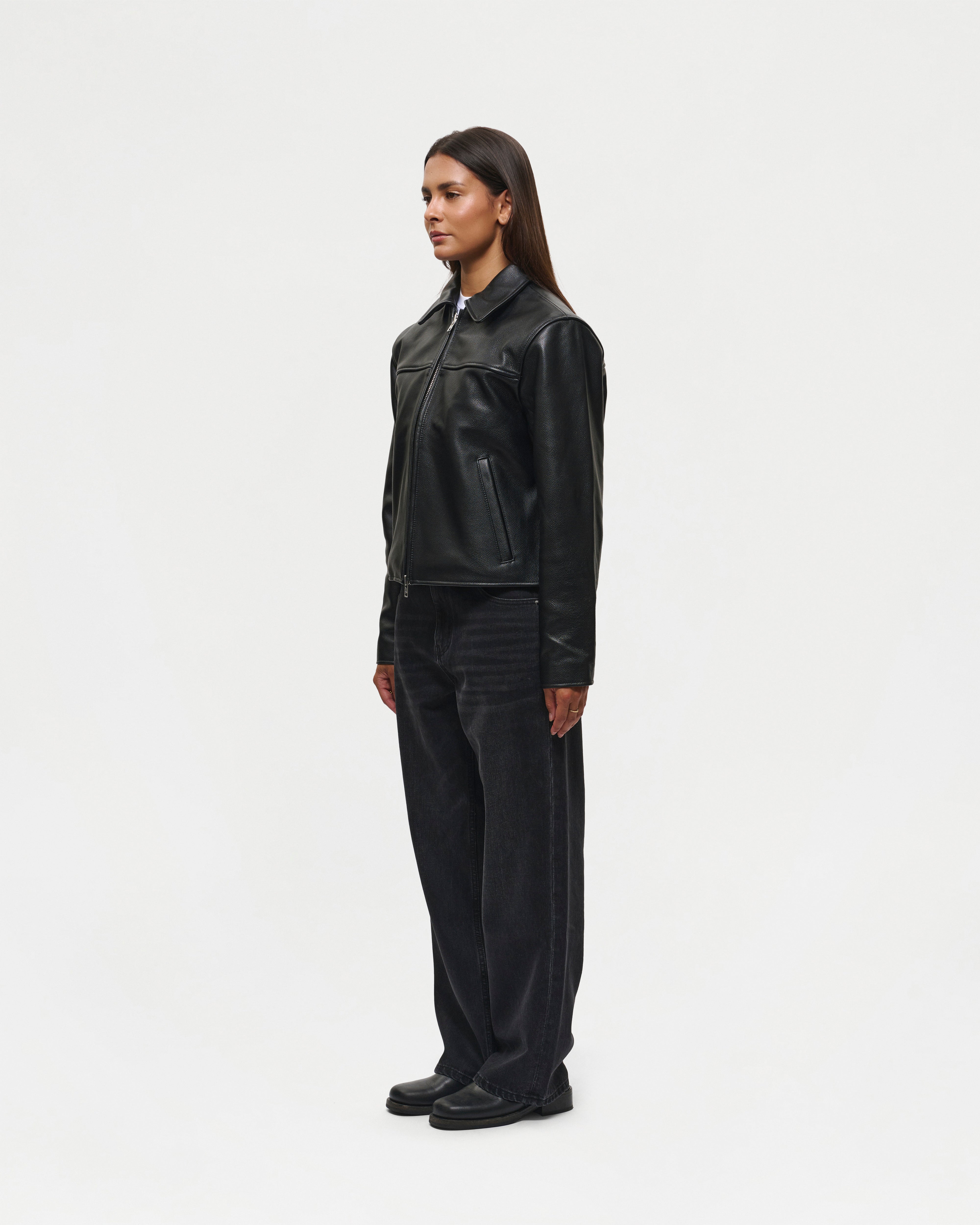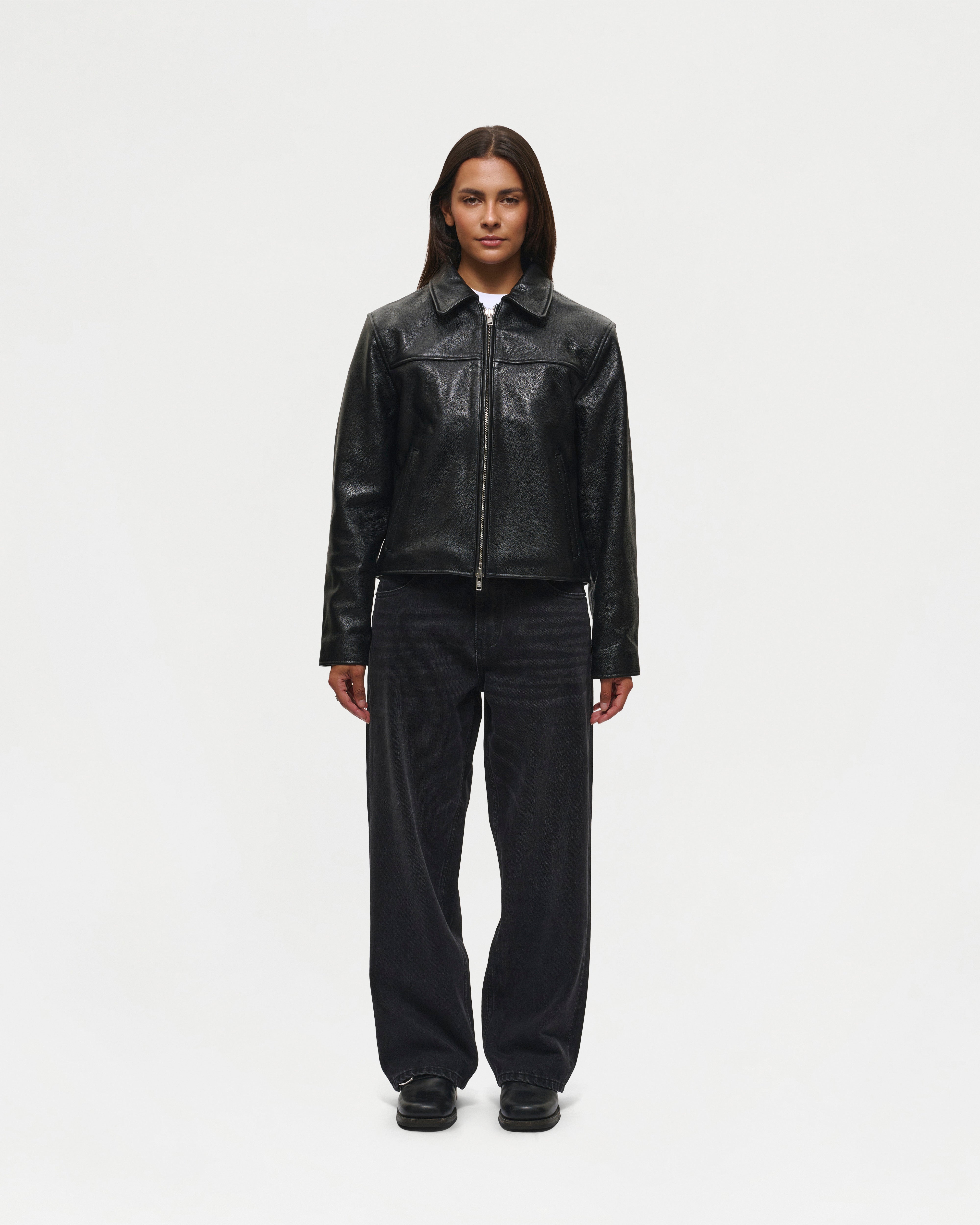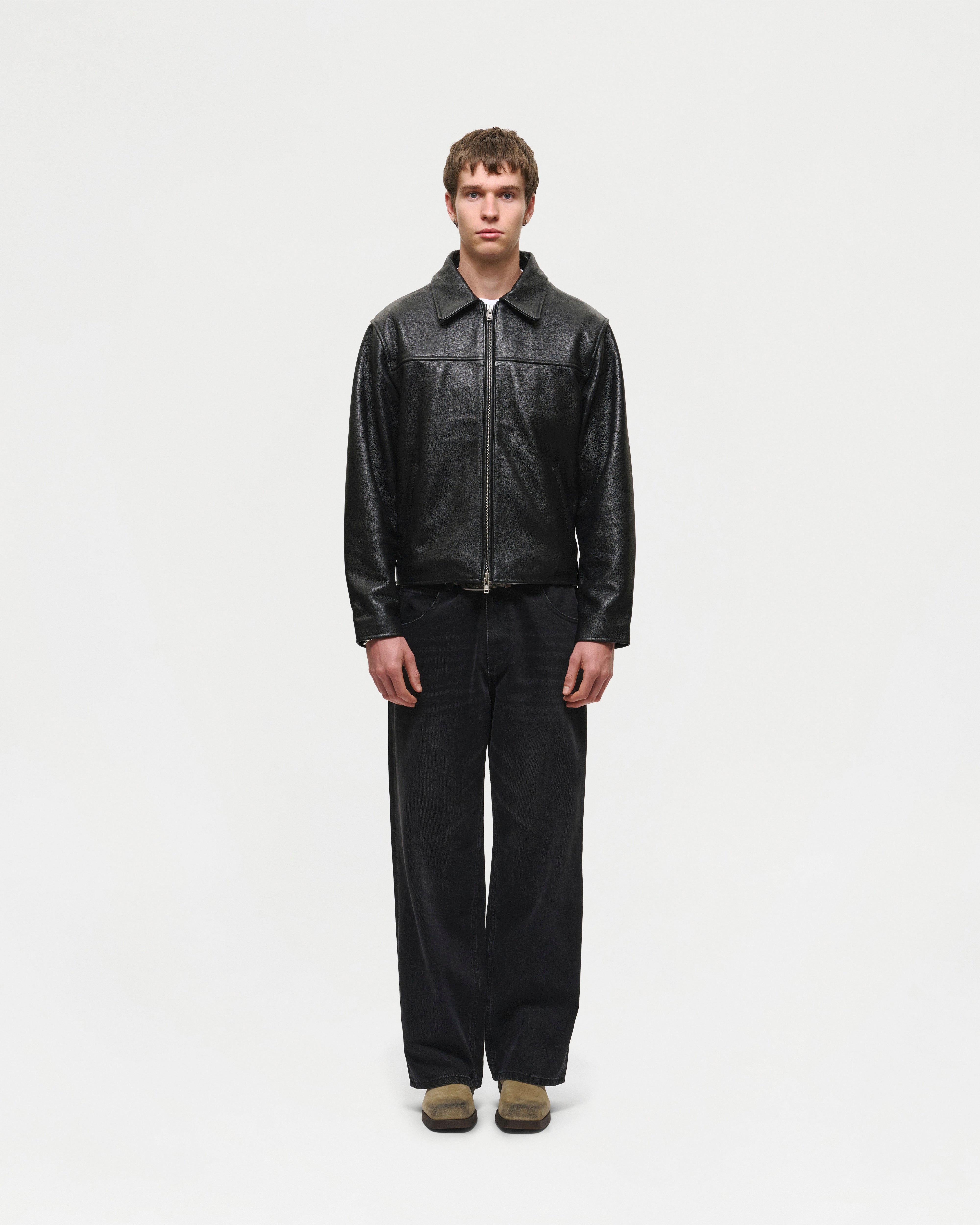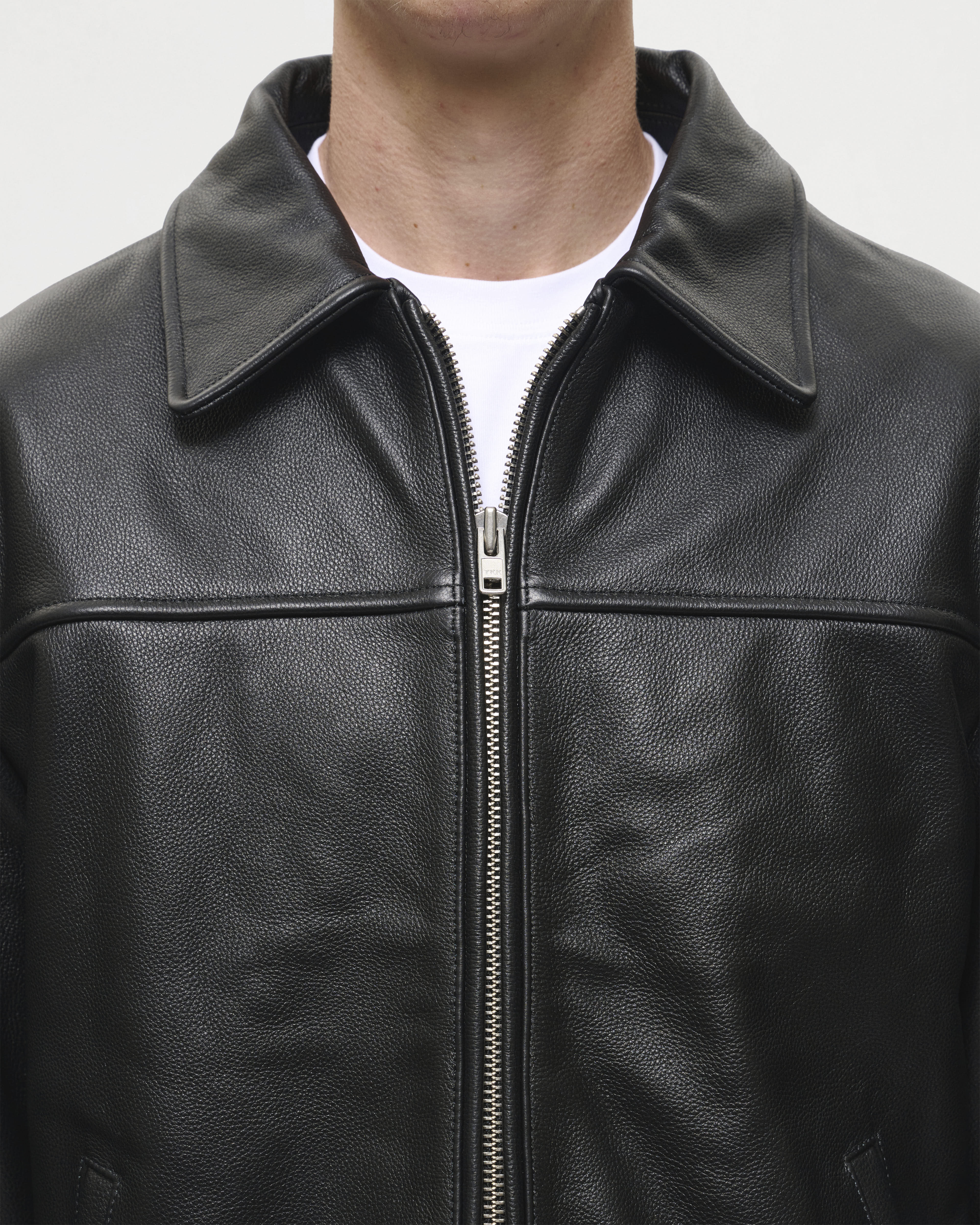 Inspired by vintage leather jackets, the Leather Jacket is designed for a slightly cropped and boxy fit and crafted from premium full-grain cow leather with nylon lining and a YKK 2-way zip.