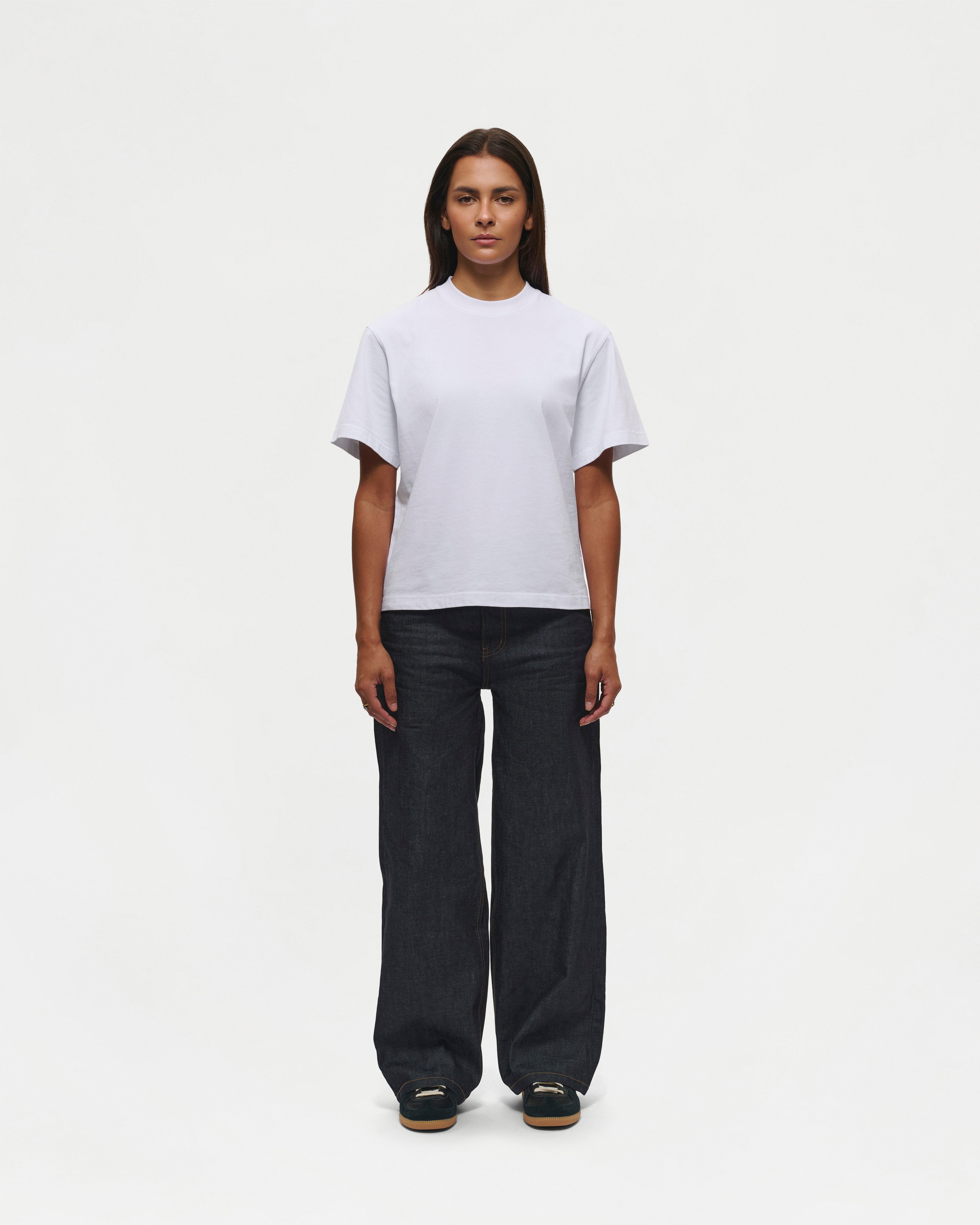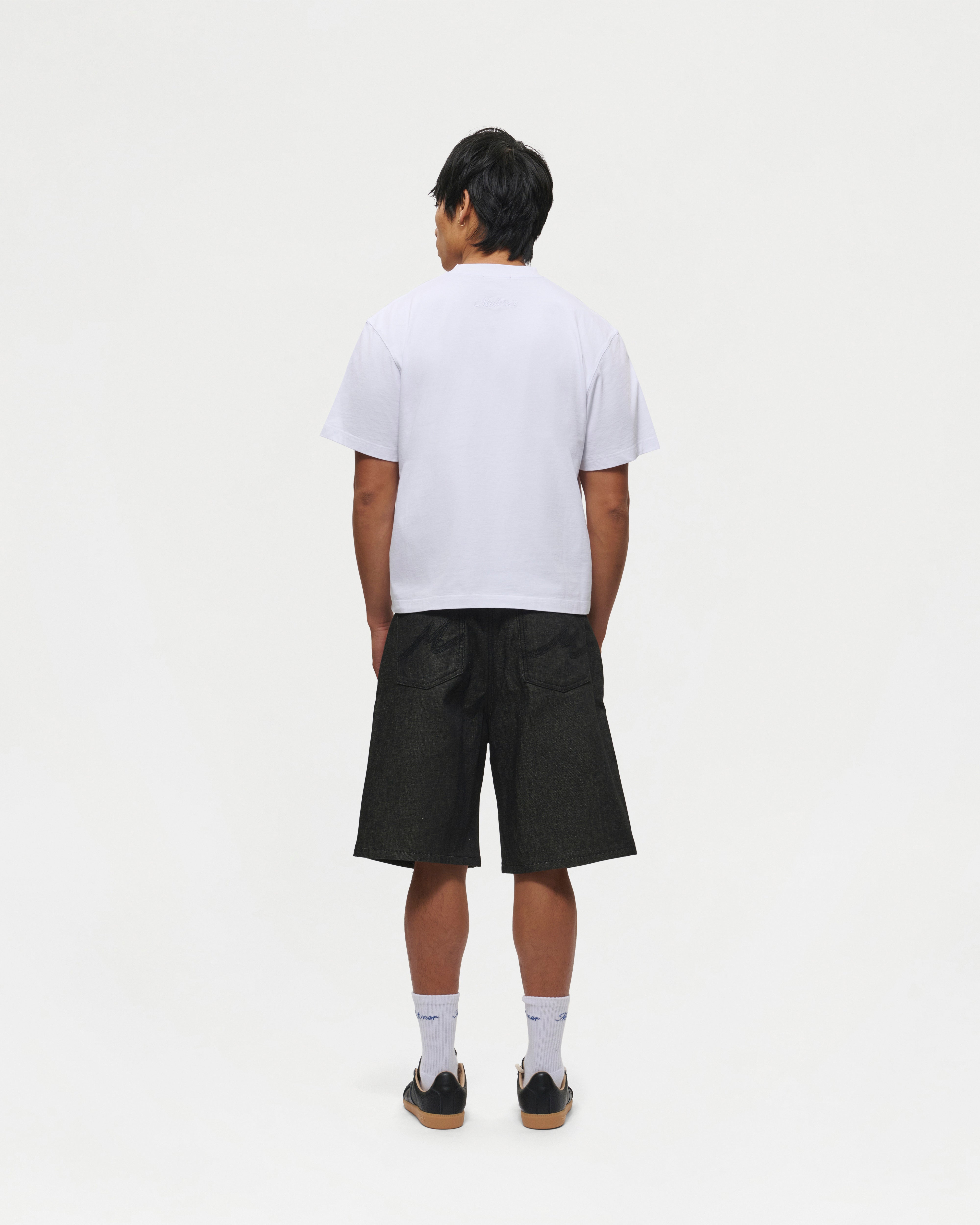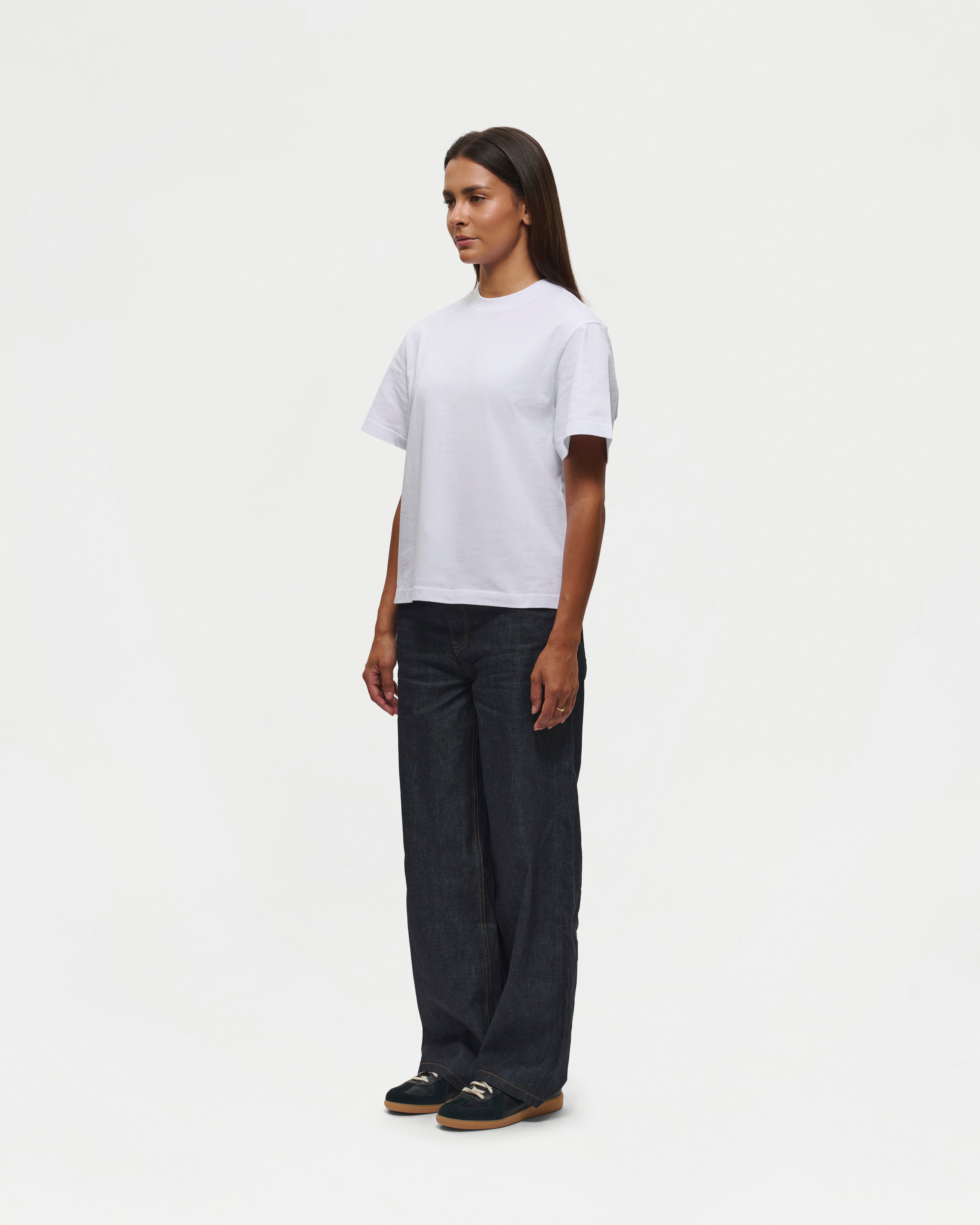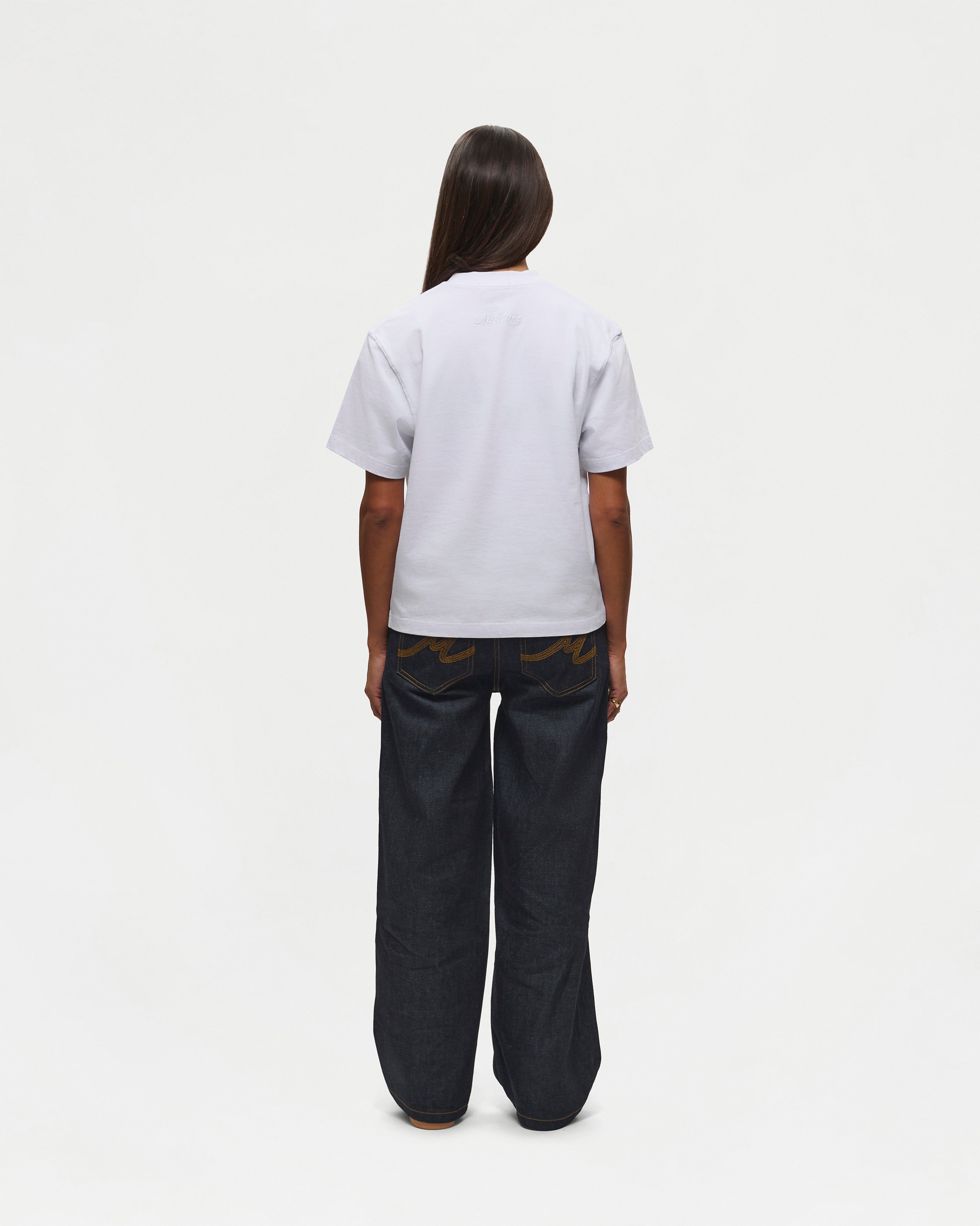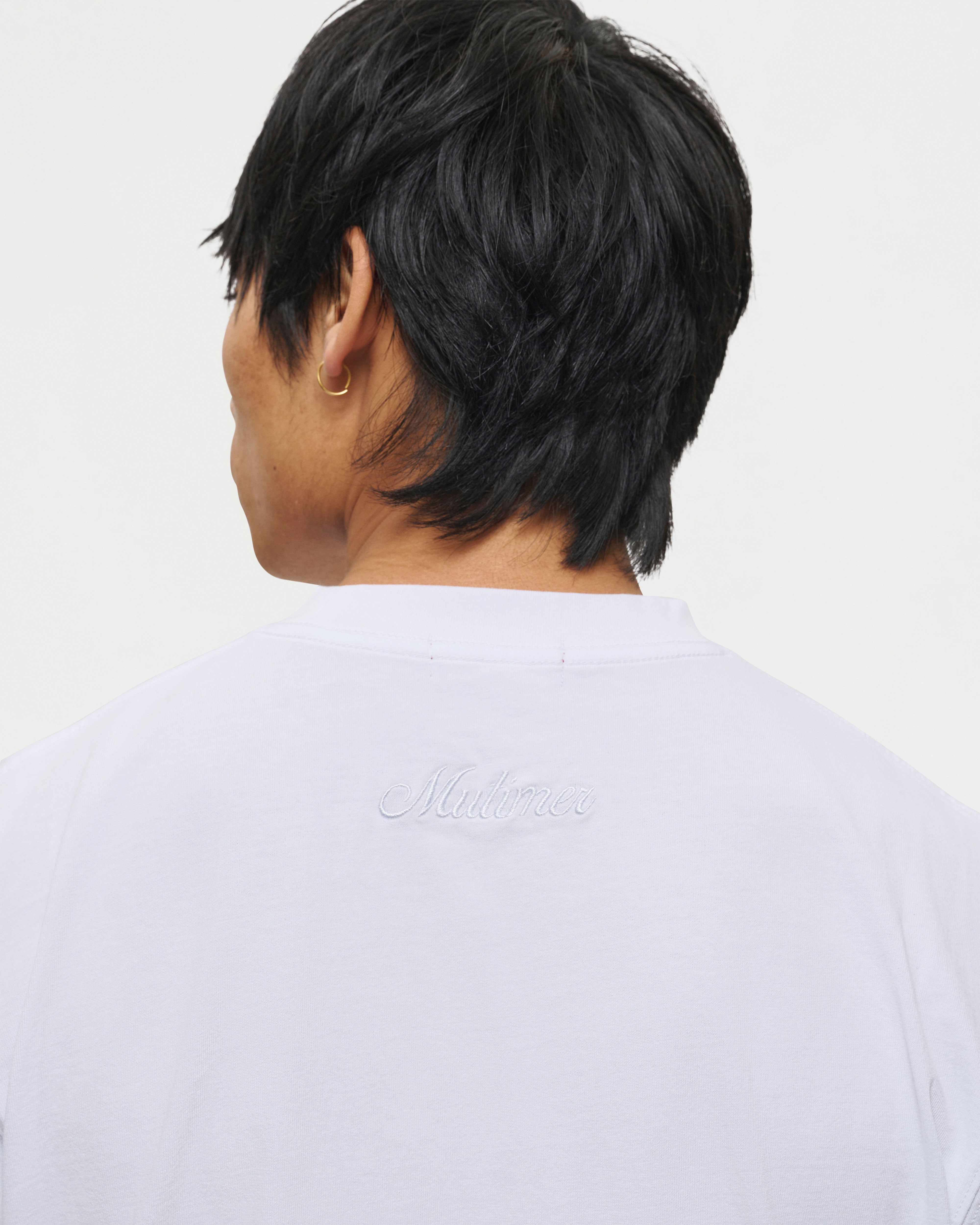Designed for a slightly cropped and boxy fit, the White Everyday t-shirt is crafted from soft midweight cotton and features a ribbed neckline with Mutimer embroidery below the back collar.